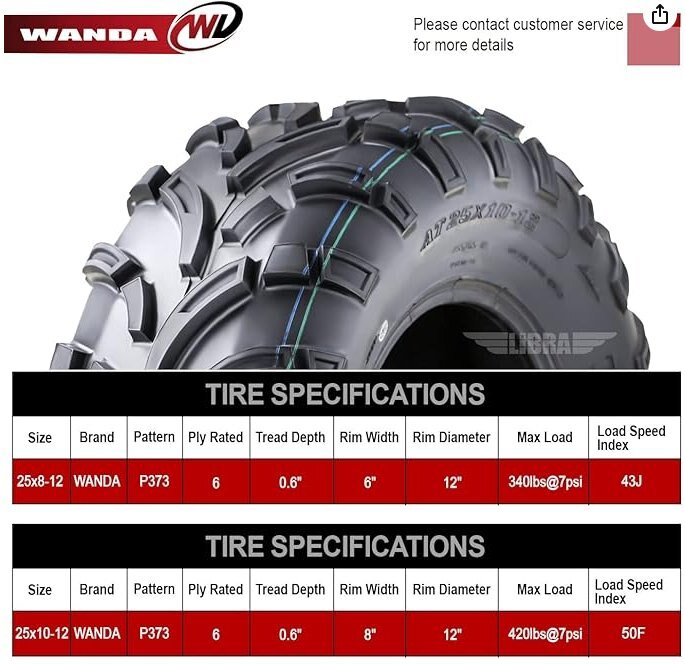 The Wanda P373 is an all terrain, all season tire made for ATVs and UTVs.